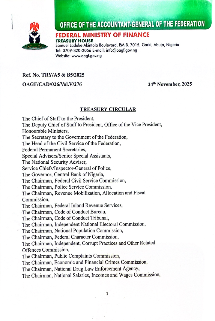 Enforcement of ‘No Physical Cash Receipt’ Policy for all Federal Government Revenue Transactions